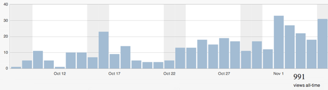 The above chart reveals 2×2’s web site’s pattern of growth. This is a project of a very small congregation. We began using Inbound Marketing techniques in February when we launched this blog. We took a few months to learn the ropes. In mid-summer we began following best marketing practices. We slowly started adding content more regularly (now daily). We monitored the statistics. Weekly, we saw interest growing. Today we expect to welcome our 1000th site visitor (almost all within the last four months!). We are averaging close to 30 new visitors every day. We’re not sure where we are going, but we are following a plan that seems to be appreciated. Thanks to all readers. We encourage you to start your own web ministry. We’ll be glad to help.
